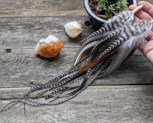 Long Handmade Feather Earrings - Natural Colors